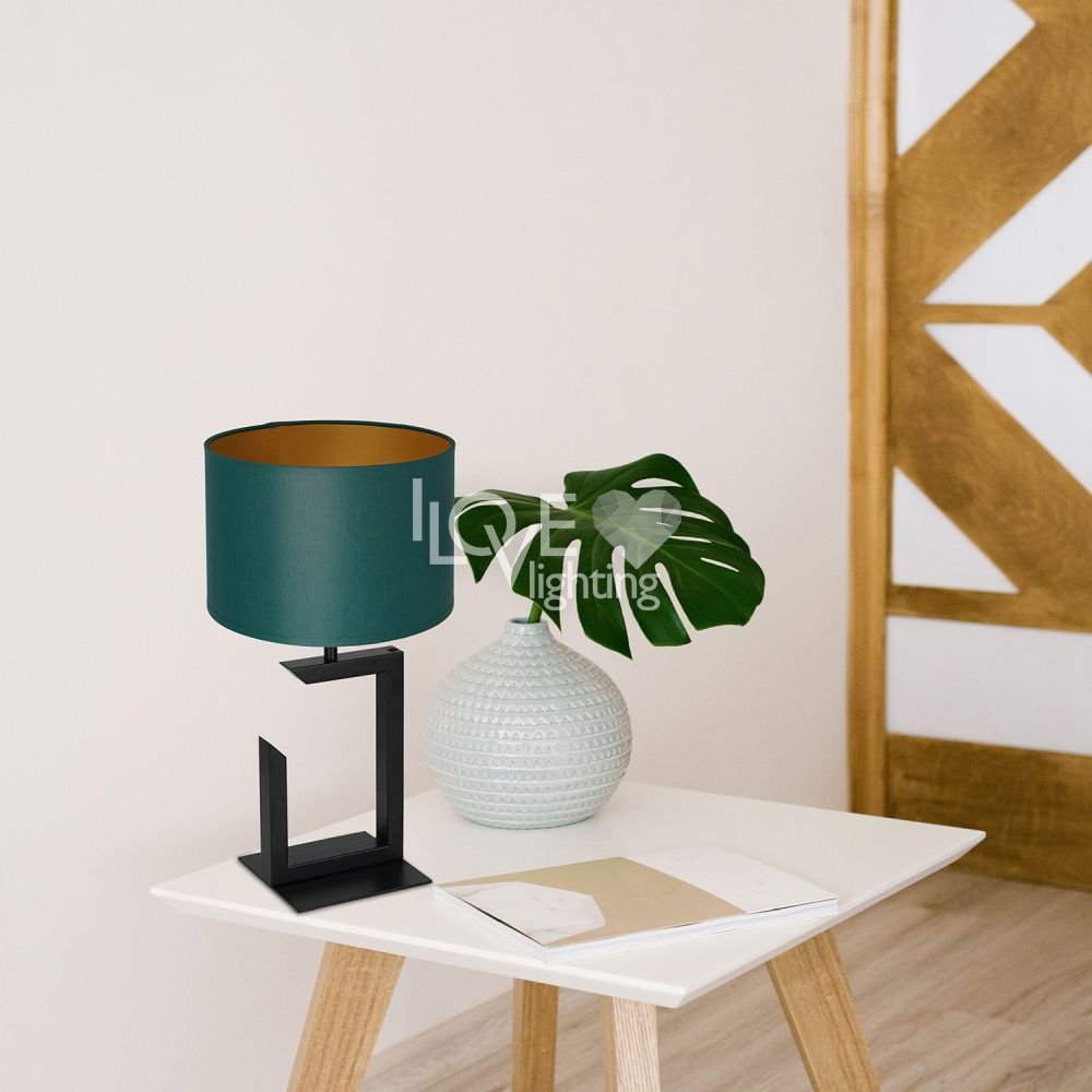 Czarna lampa stołowa nocna z zielonym abażurem TABLE LAMPS 3405 Luminex
