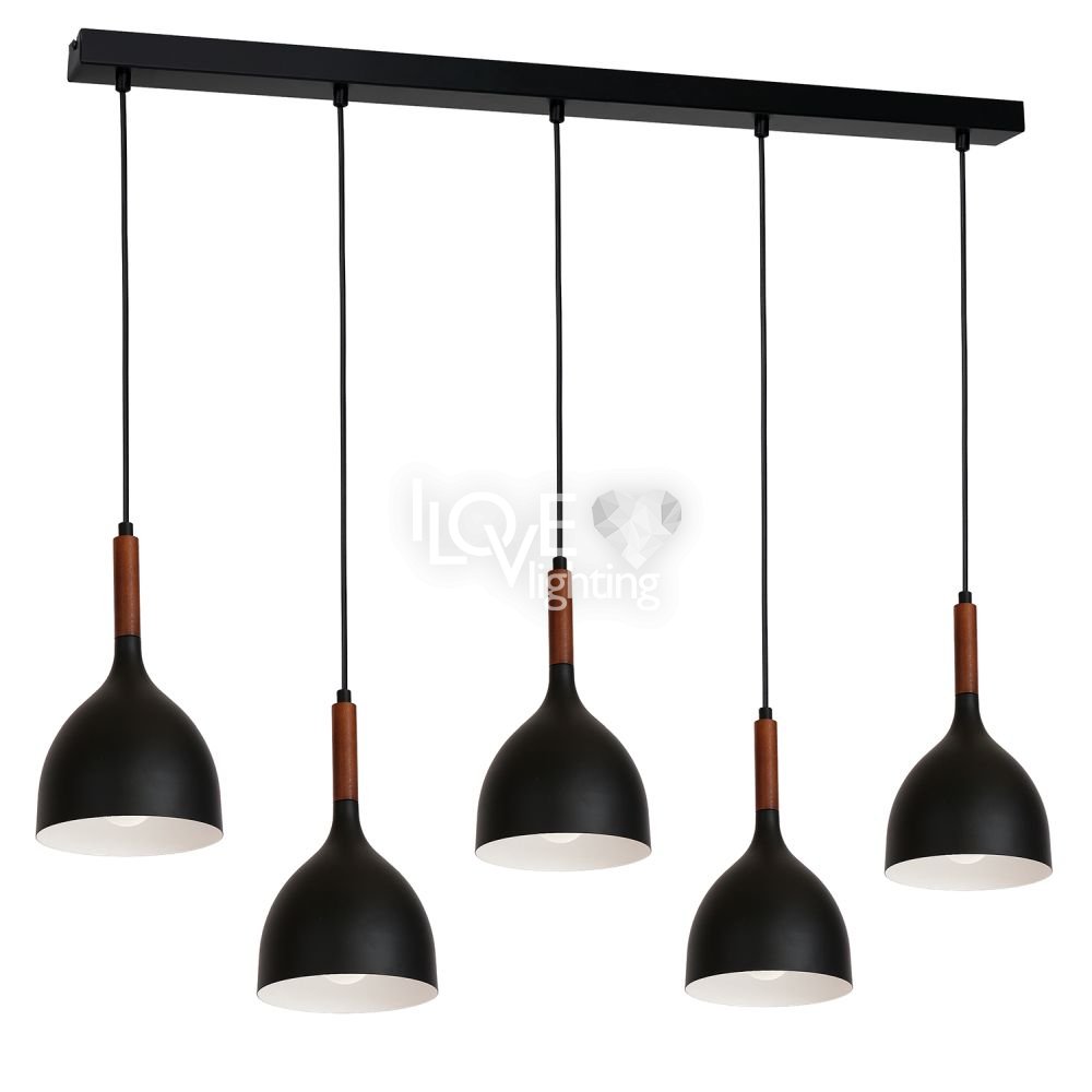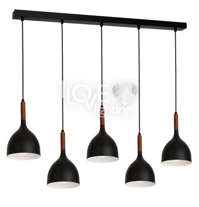 Czarna lampa wisząca na listwie 5-punktowa NOAK WOOD 3708 Luminex