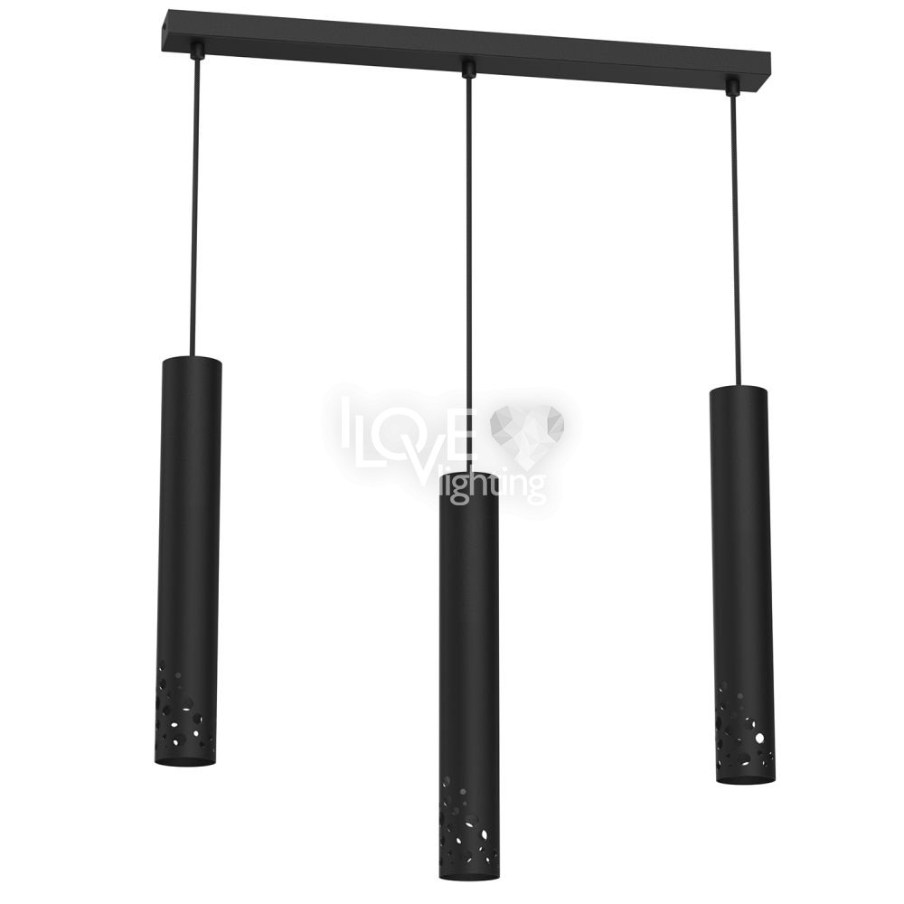 Czarna potrójna lampa wisząca tuby na listwie TIBIA BUBLE 5722 Luminex