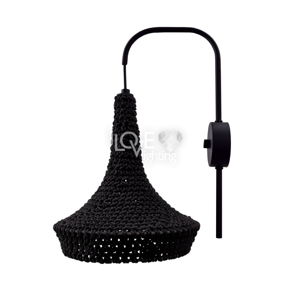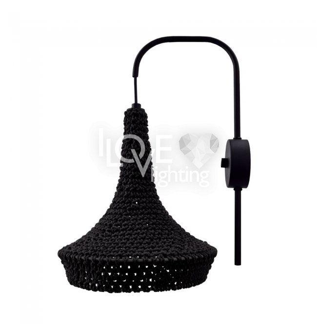 Czarny kinkiet z bawełnianym abażurem handmade MAHAKA 4031 Antigo