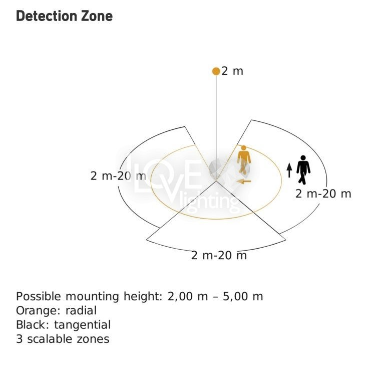 | Odległość wykrywania przez czujnik (m): | 3 strefy 2-20 |