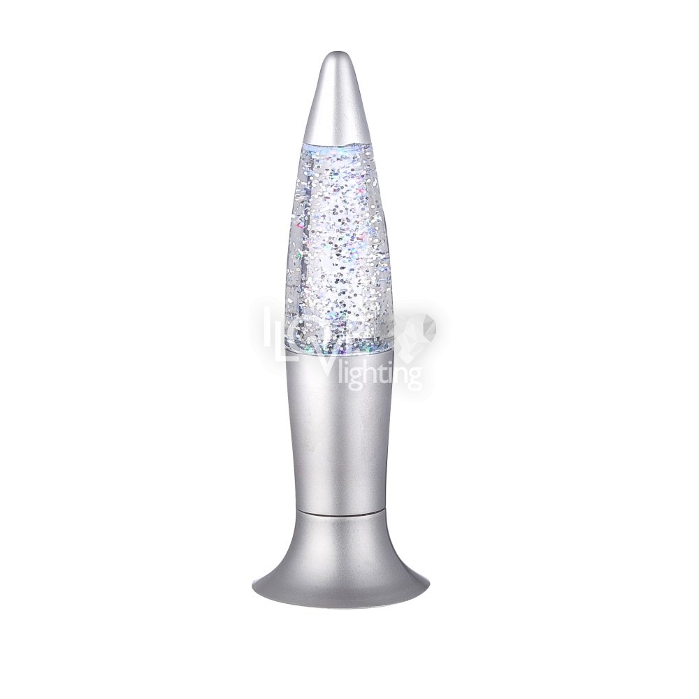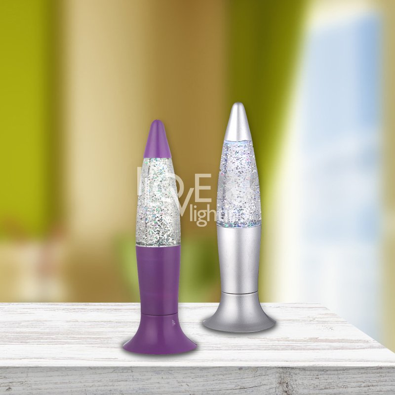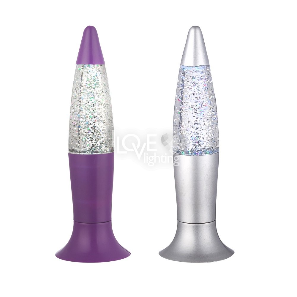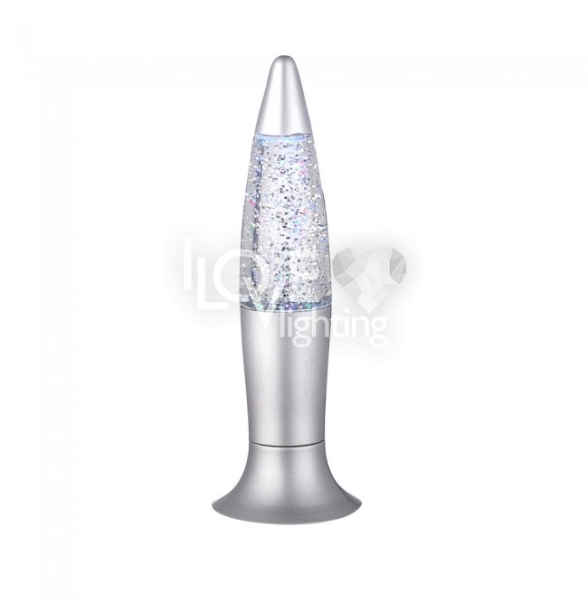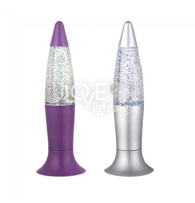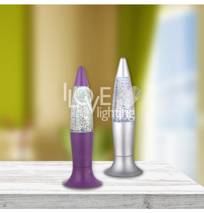 Lampa stołowa plastik srebrny srebrny fioletowy, bezbarwny, do wstrząsania, LED, przełącznik, zmieniacz kolorów, 3x LR44 1,5V, szer: 62, wys: 185mm, zawiera 1xLED 0,05W 3V, czerwony, 1x LED 0,05W 3V, niebieski , 1xLED 0,05W 3V, zielony. KOLOR WYSYŁANY LOSOWO