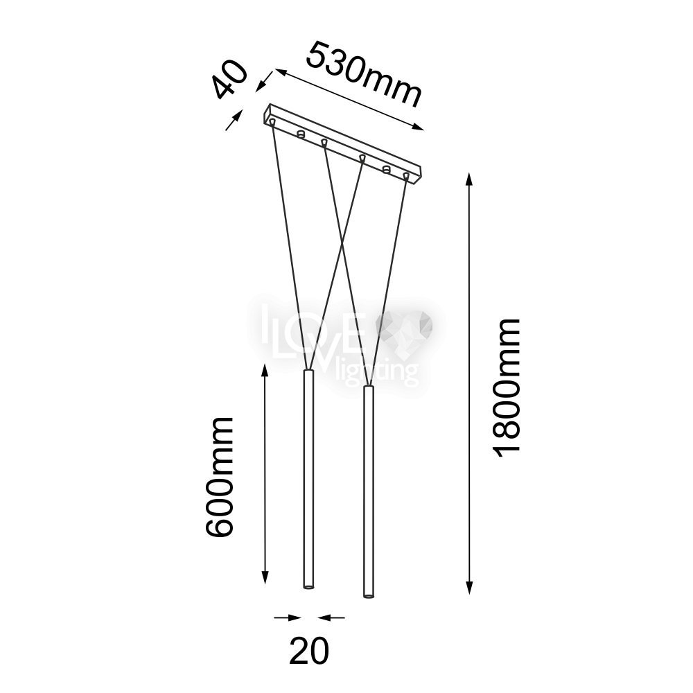 Dwupunktowa czarna lampa wisząca tuby MIAKI 5165 Antigo