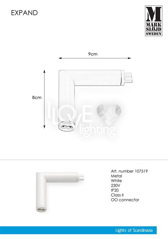 EXPAND Łącznik narożnik Biały 107519 Markslojd