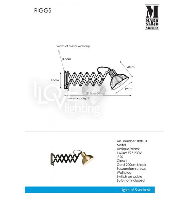 Kinkiet na wysięgniku RIGGS 108104 Markslojd