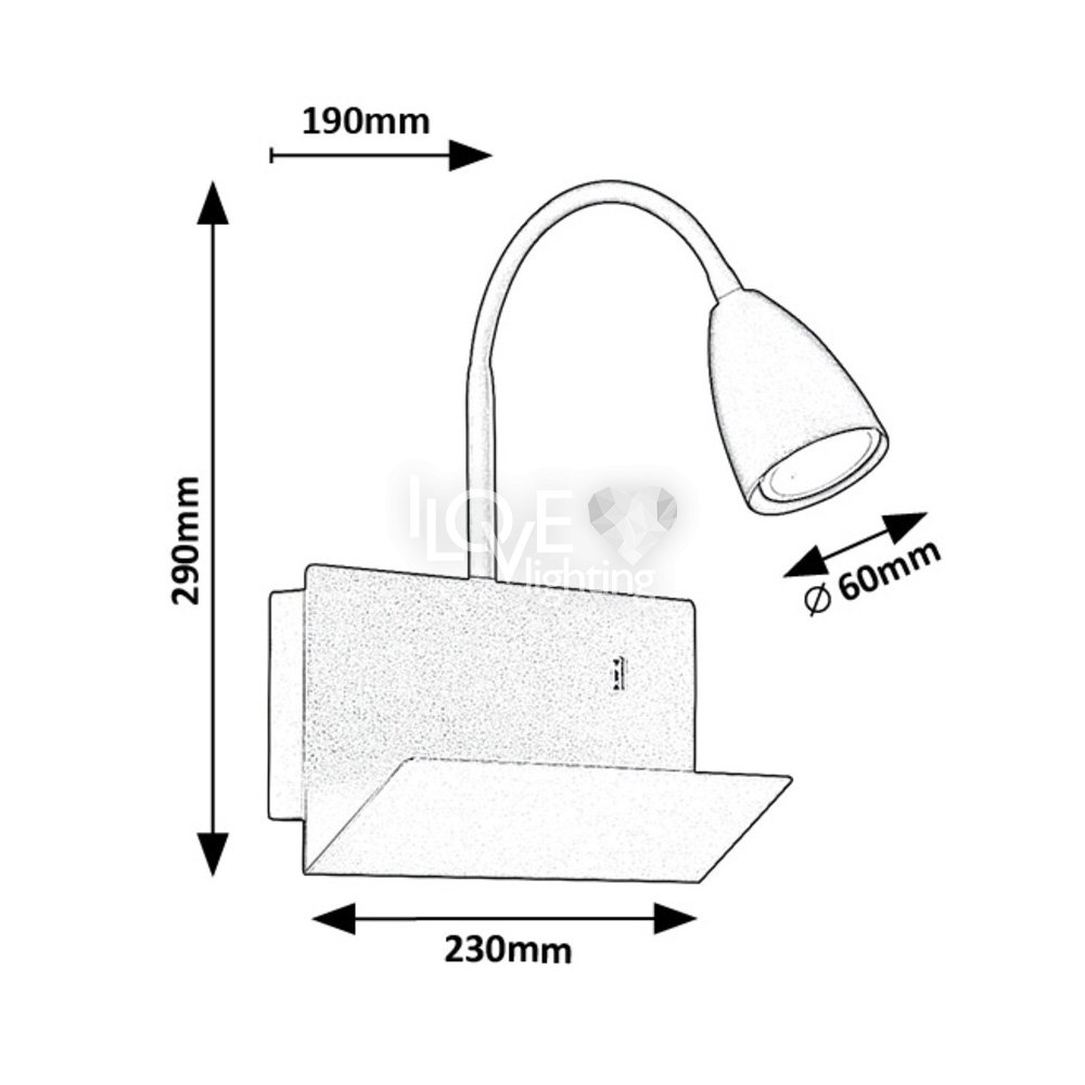Kinkiet na wysięgniku z półką i gniazdem USB TACITO 71090 Rabalux