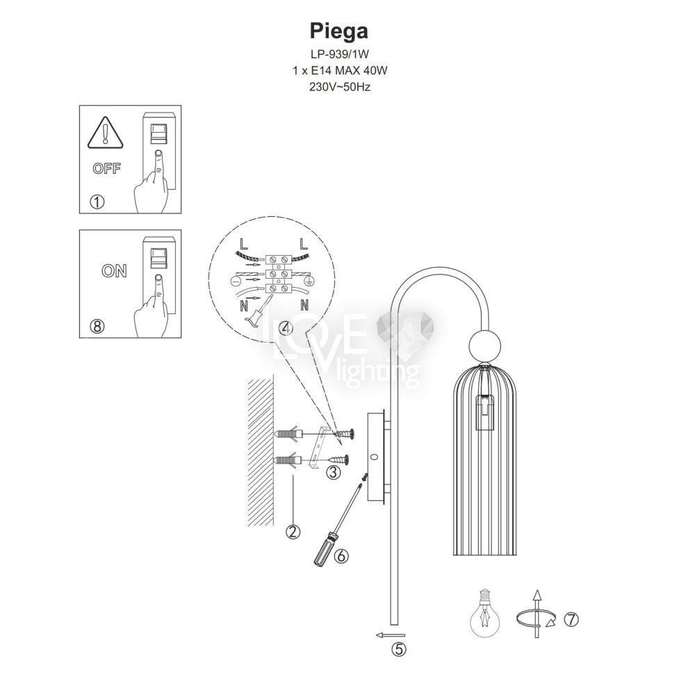Kinkiet PIEGA LP-939/1W amber Light Prestige