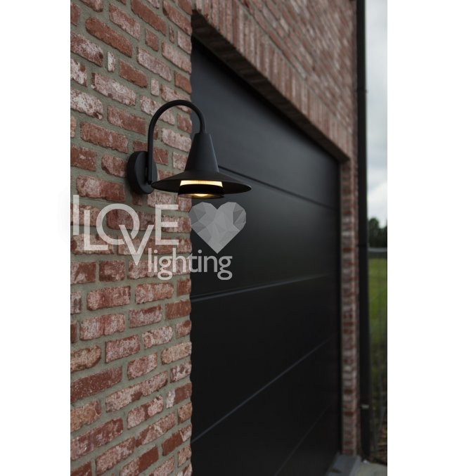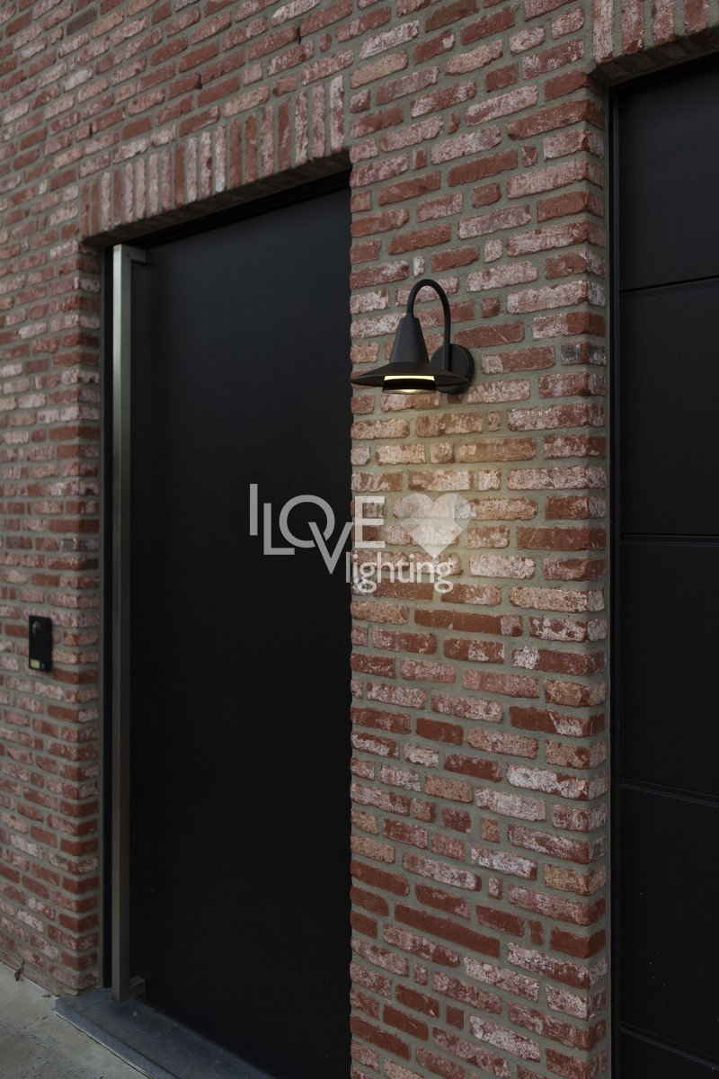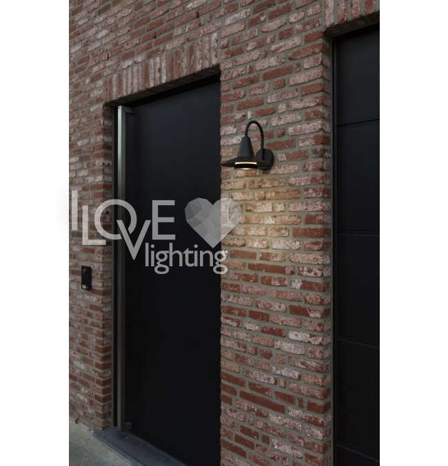 Zewnętrzna lampa ścienna SWAN do użytku zewnętrznego, wykonana z czarnego aluminium, posiada design przypominający elegancką szyję łabędzia, wprowadzając unikalny industrialny styl do otoczenia. Przeznaczona jest do żarówki E27, łącząc charakterystyczną estetykę z funkcjonalnymi możliwościami oświetleniowymi.