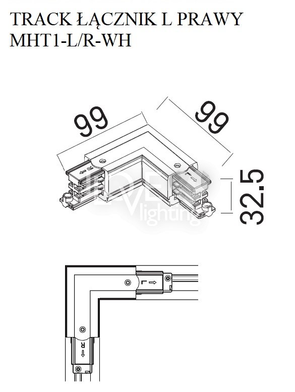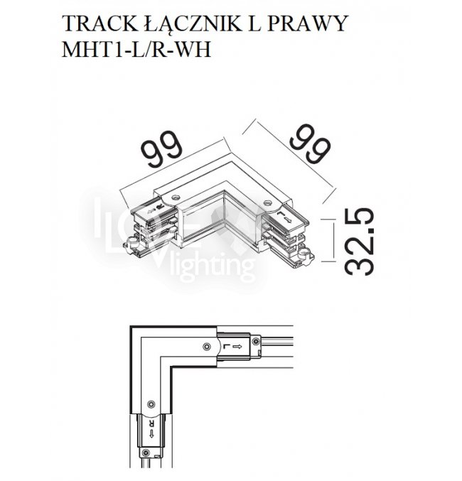 Łącznik typu "L" prawy TRACK biały DOBAC MHT1-L/R-WH MaxLight