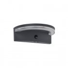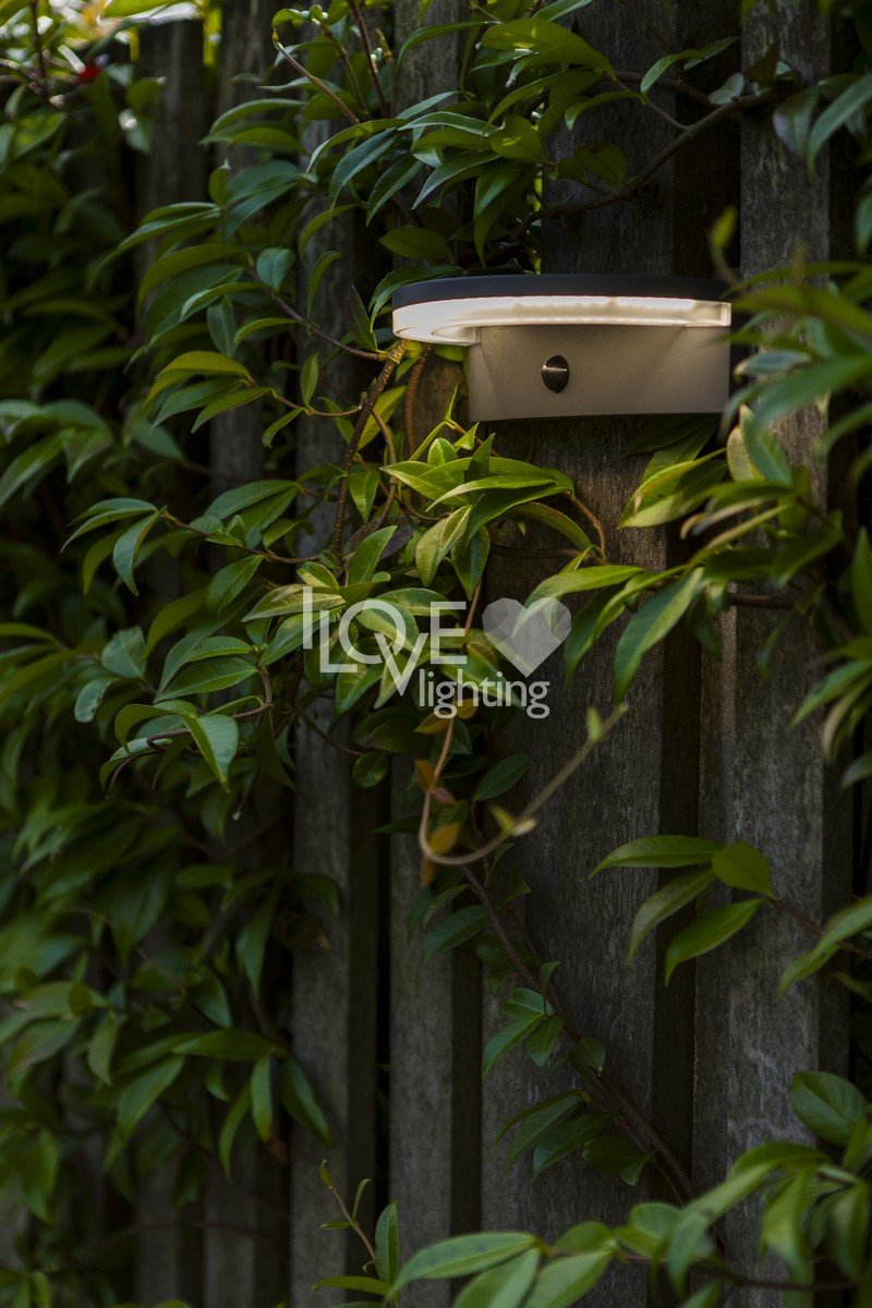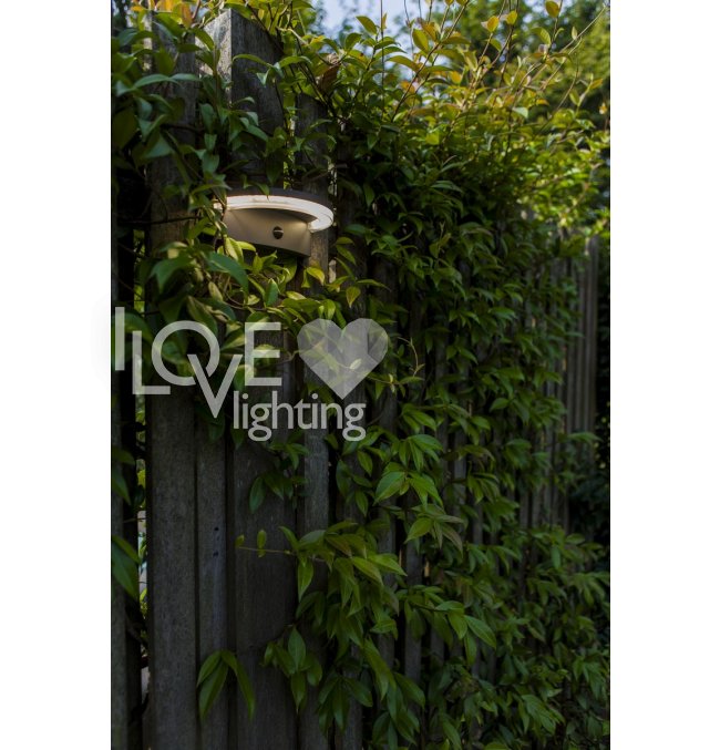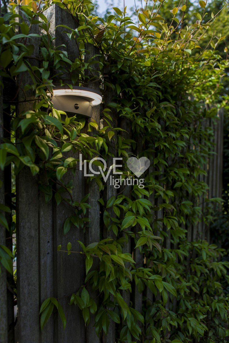Solarny kinkiet VYZOR zasilana energią słoneczną, wykończona w ciemnoszarym kolorze, charakteryzuje się nowoczesnym, półokrągłym kształtem i wyposażona jest w czujnik PIR. Ten design zapewnia skuteczne oświetlenie aktywowane ruchem, idealne do zwiększenia bezpieczeństwa i tworzenia atmosfery na zewnątrz.