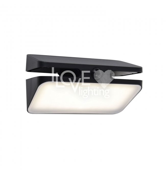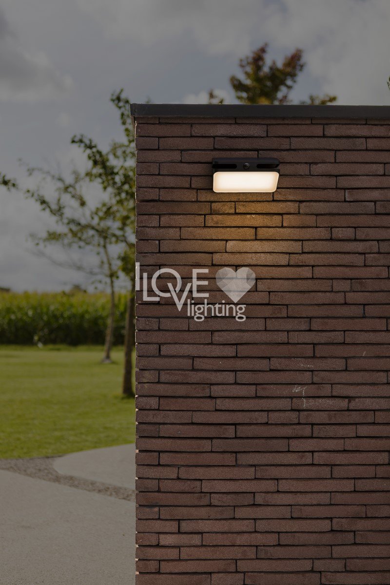 Solarny kinkiet AERO, wykonana z trwałego materiału ABS w eleganckim czarnym wykończeniu, charakteryzuje się nowoczesnym designem i jest wyposażona w czujnik ruchu PIR, co czyni ją wydajnym i stylowym wyborem do oświetlenia zewnętrznego.