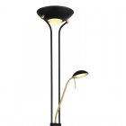 Lampa podłogowa, metal czarny, mosiądź, szkło opal, kabel PCV czarny, ściemniacz, regulacja flexo, ?: 255 mm, Wys: 1800 mm, długość przyłącza 1800 mm, LED 20W 230V, 2200lm źr, 1690lm, 3000K, zaw LED 5,5W 230V, źródło 640lm, na wyjściu 350lm, 3000K