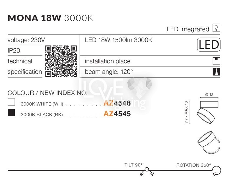 Lampa reflektor spot LED 18W MONA AZ4545 Azzardo