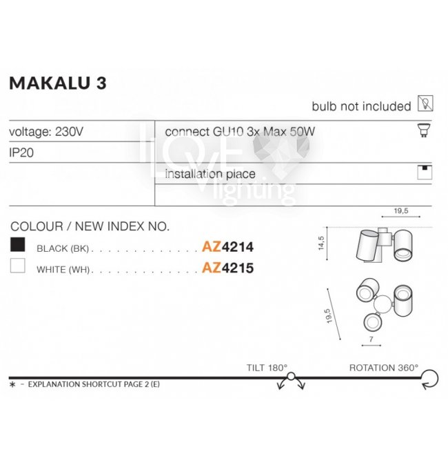 Lampa reflektor spot MAKALU 3 AZ4214 Azzardo