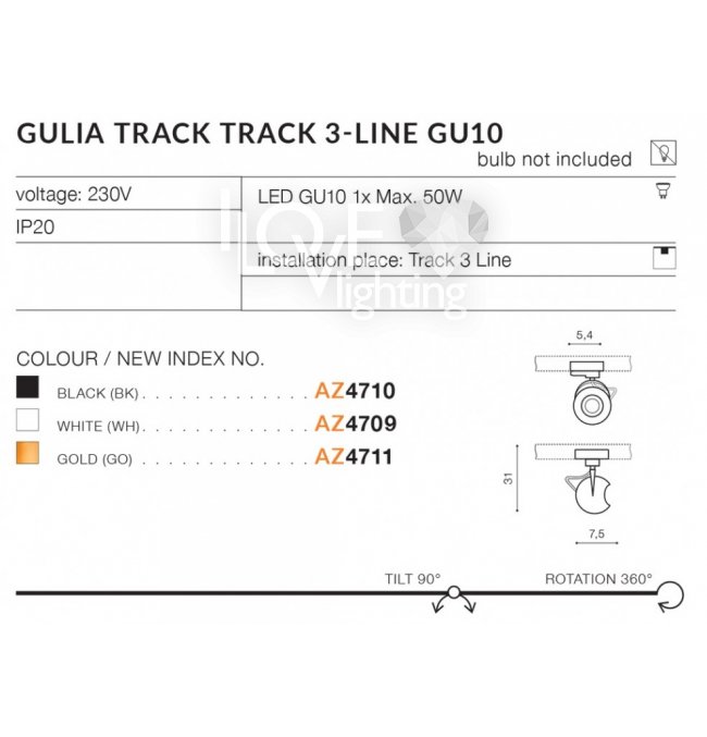 Lampa reflektor spot szynowy GULIA TRACK 3LINE AZ4711 Azzardo