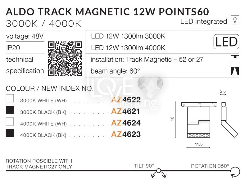 Lampa reflektor spot szynowy LED 12W ALDO TRACK MAGNETIC AZ4621 Azzardo