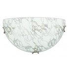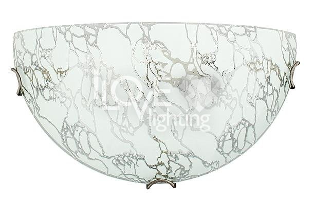 Klasyczny kinkiet z kloszem ze szkła giętego, po całej powierzchni zdobiony oryginalnym lodowym wzorem, uzyskanym w procesie produkcji, dodatkowo malowany od wewnatrz, polerowany na zewnątrz, metalowe dekoracyjne uchwyty. Odpowiedni do pomieszczeń w stylu klasycznym, jak również do nowoczesnym.