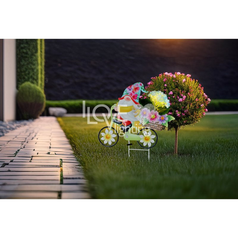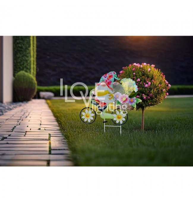 Lampa solarna dogruntowa LED 20x0,06W Krasnal na rowerze z kwiatami SOLAR 36318 Globo