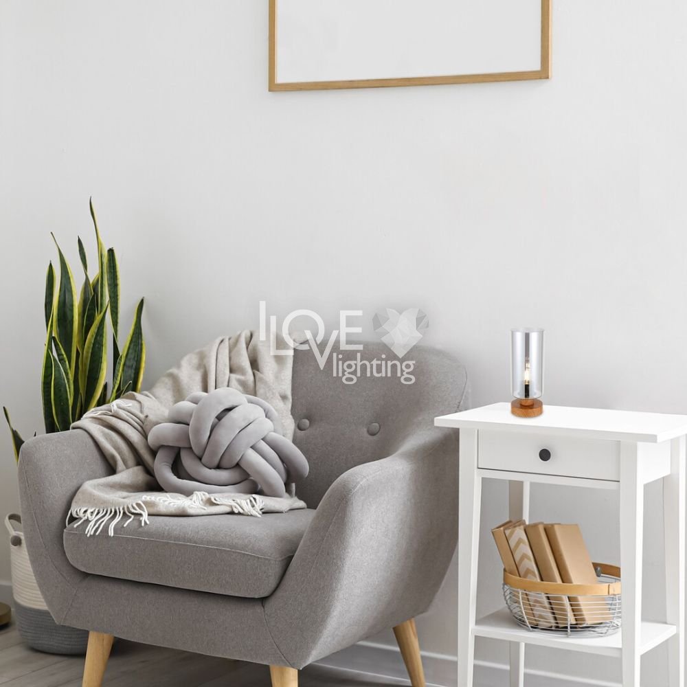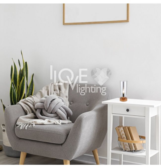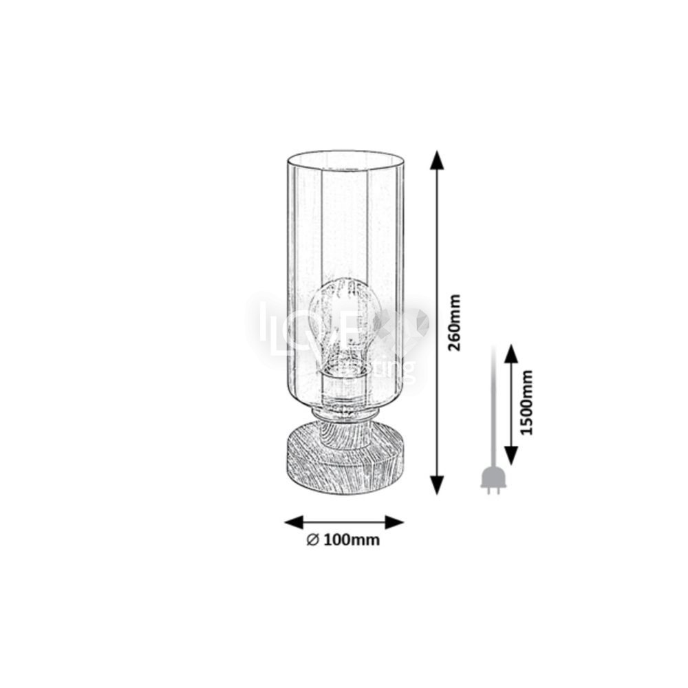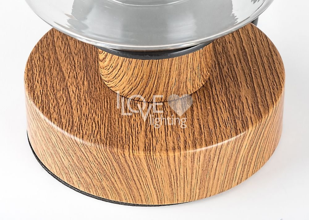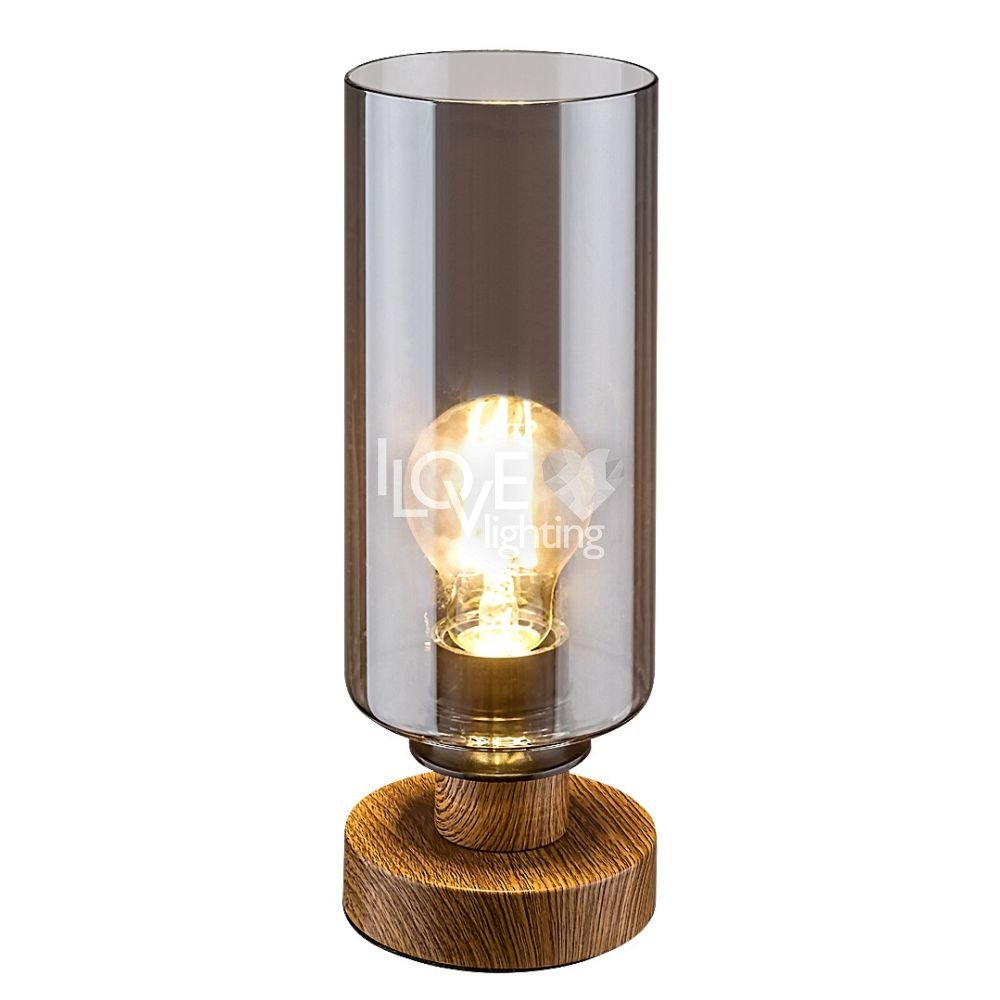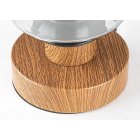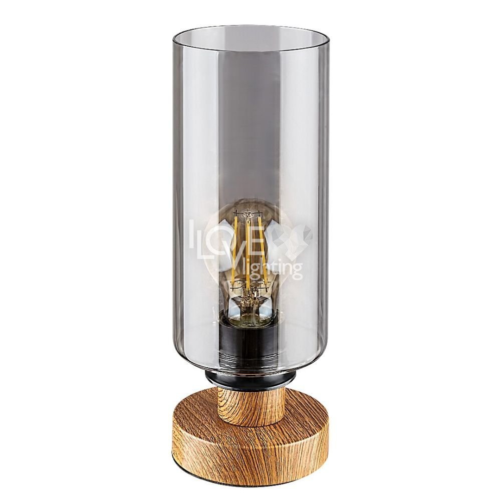 Utrzymana w nowoczesnym stylu lampa stołowa Tanno dzięki ciepłym nutom może stać się nastrojowym elementem wystroju salonu. Ze względu na niewielkie rozmiary z łatwością możemy umieścić lampą na niższym stoliku lub półce. Wykonana z metalu oprawa jest uzupełniona podstawą dekoracyjną w kolorze dębowym, kablem tekstylnym i wysokim, cylindrycznym kloszem ze szkła barwionego. Ponieważ w przypadku tej lampy źródło światła jest w pełni widoczne przez klosz, warto zastosować niestandardową żarówkę dekoracyjną. Do oprawy Tanno można zastosować źródło światła z trzonkiem E27 o mocy max. 25 W. Do tej oprawy najlepiej zastosować źródło światła o ciepłobiałej barwie, które stworzy przytulną, domową atmosferę. Wymiary lampy biurkowej są następujące: wysokość 260 mm, średnica 100 mm, długość przewodu 1500 mm. Model ten jest dostarczany bez źródła światła.