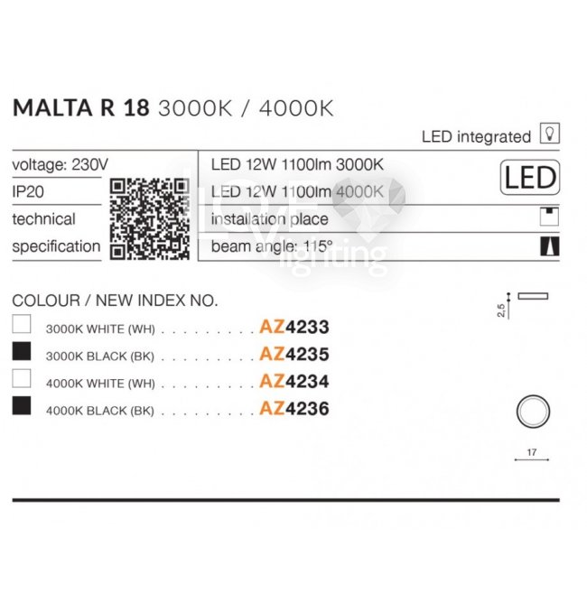 Lampa sufitowa LED 12W MALTA AZ4234 Azzardo