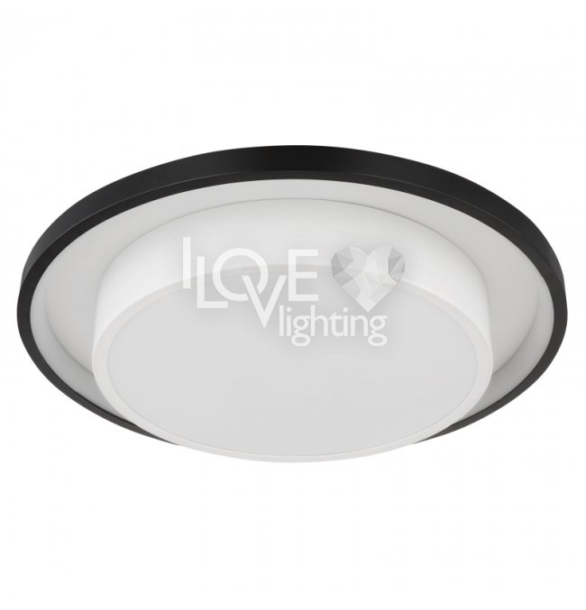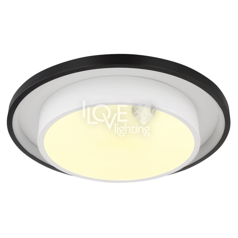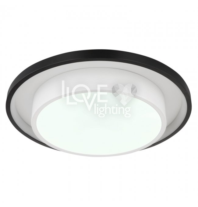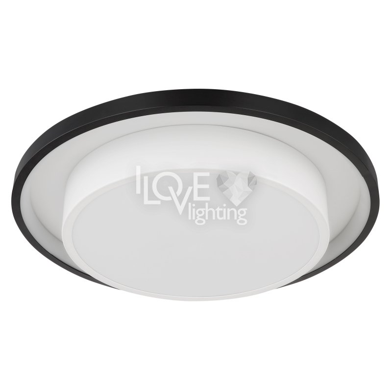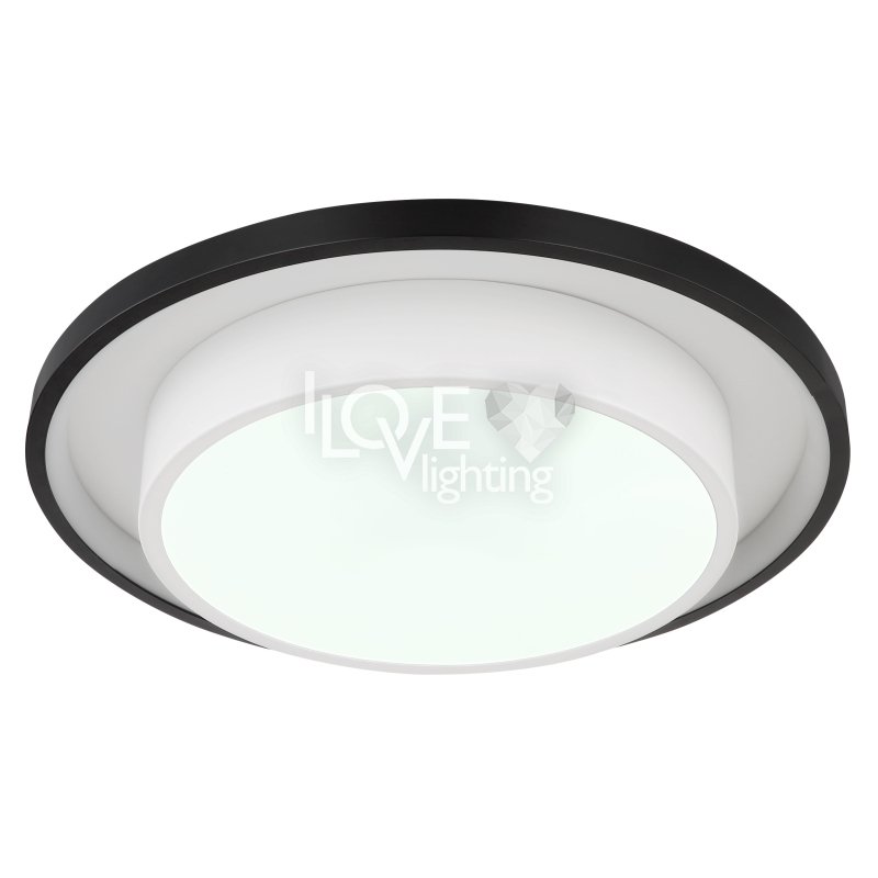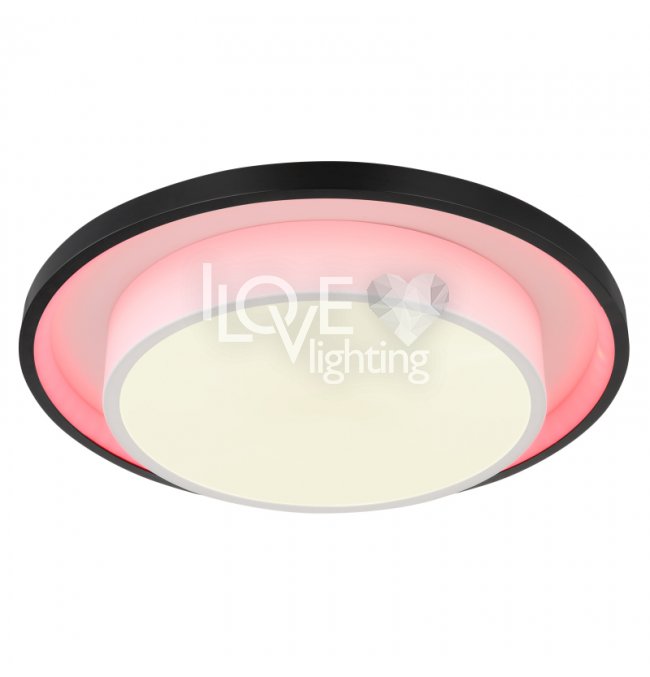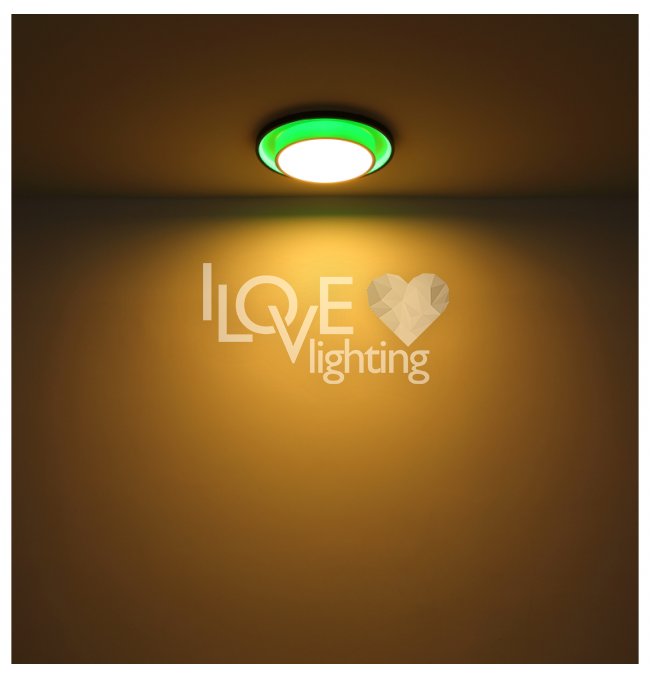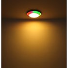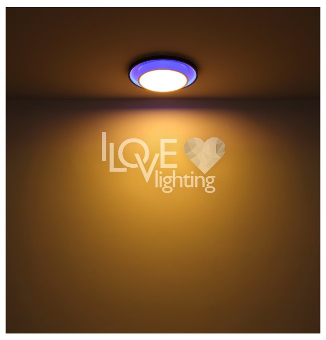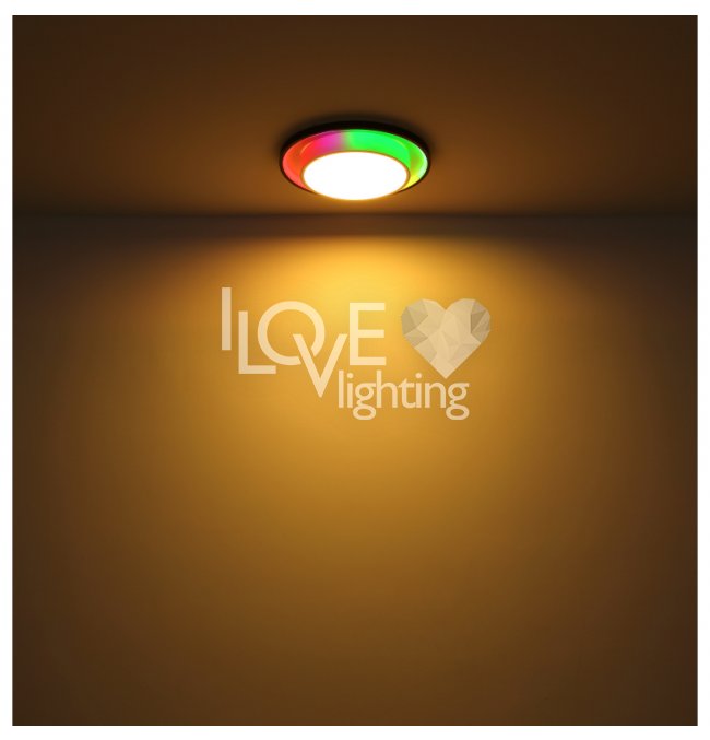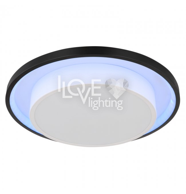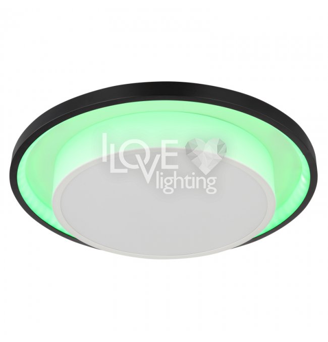 Lampa sufitowa LED, metal czarny mat, akryl opal, ściemniacz, regulacja z wyłacznika ściennego, RGB, pilot, pamieć ustaiweń, efekt tęczy, ?: 395mm, Wys: 50mm, zaw. LED 21W 230V, 210-2120lm źródło, 90-900lm wyj, CCT 2700-6500K, zaw. RGB LED 3W 230V