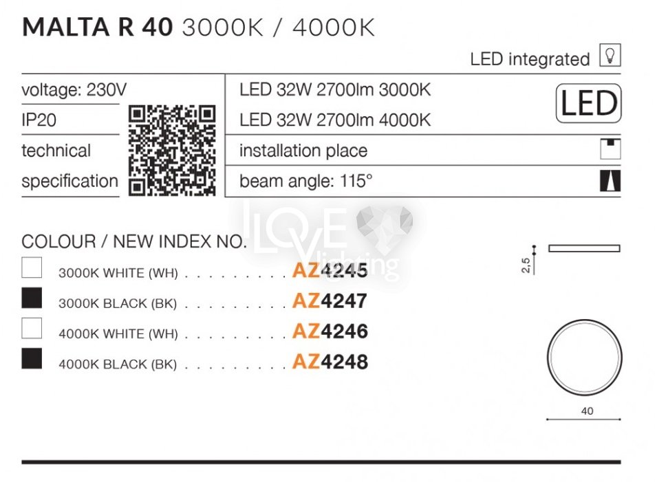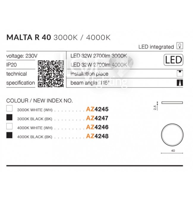 Lampa sufitowa LED 32W MALTA AZ4245 Azzardo