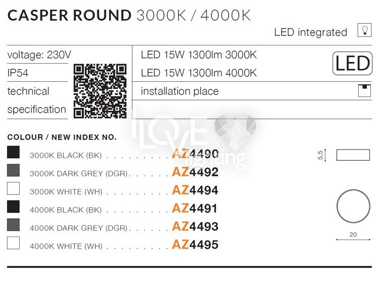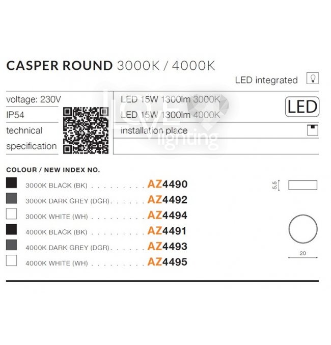 Lampa sufitowa zewnętrzna LED 15W CASPER ROUND AZ4490 Azzardo