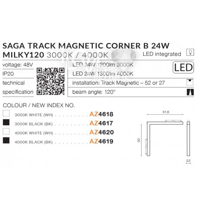 Lampa szynowa narożna LED 24W SAGA TRACK MAGNETIC CORNER B AZ4617 Azzardo