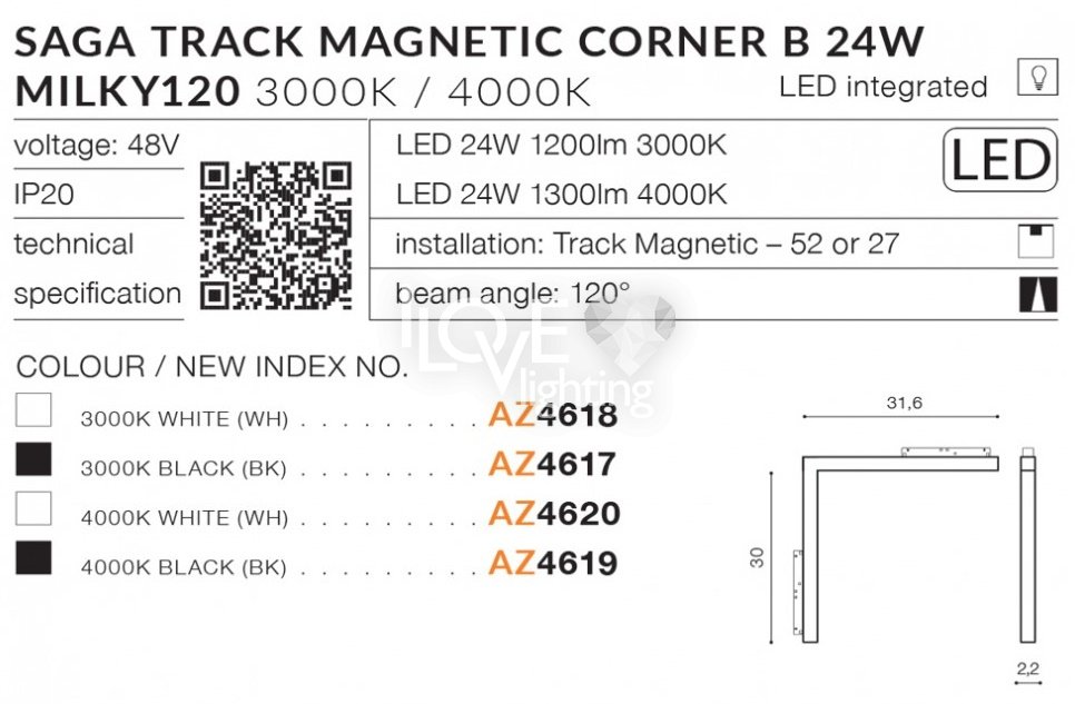 Lampa szynowa narożna LED 24W SAGA TRACK MAGNETIC CORNER B AZ4619 Azzardo