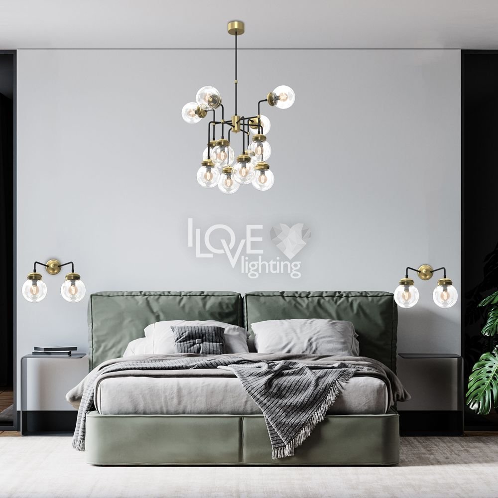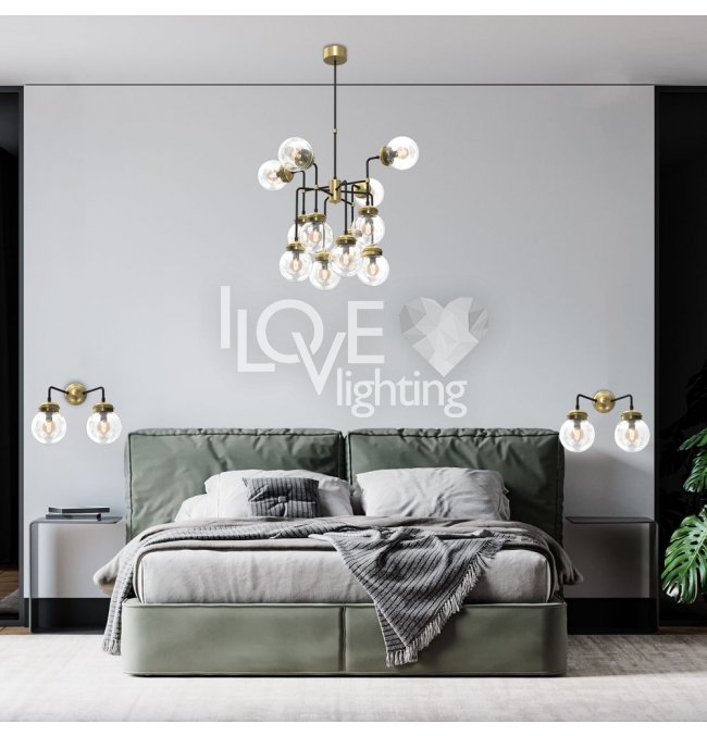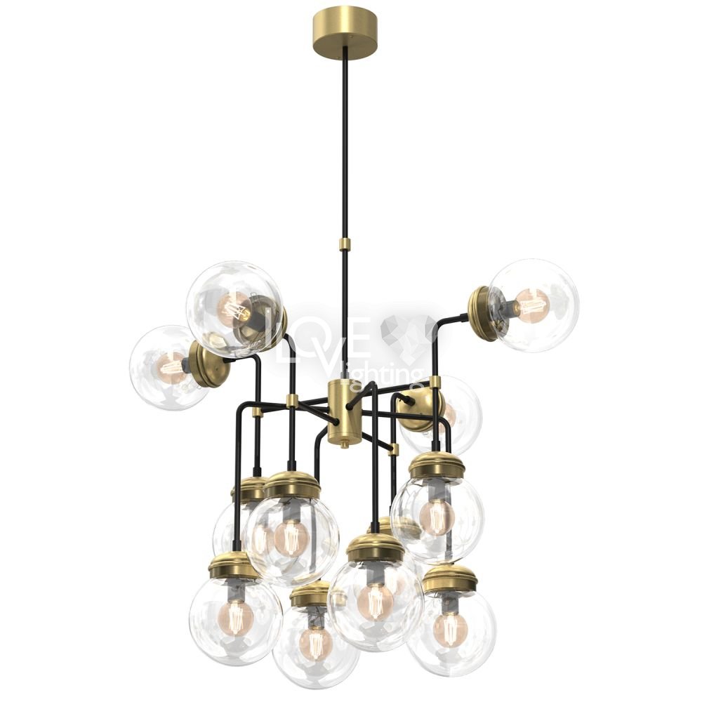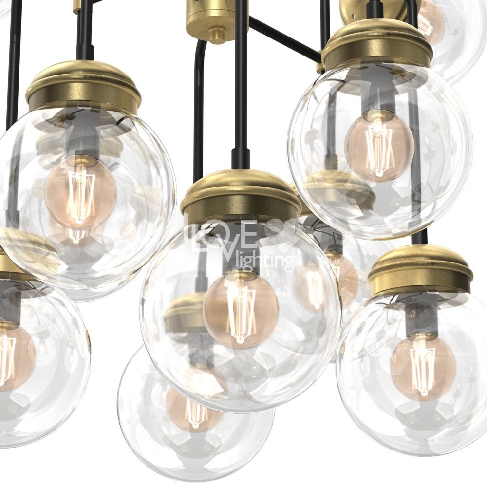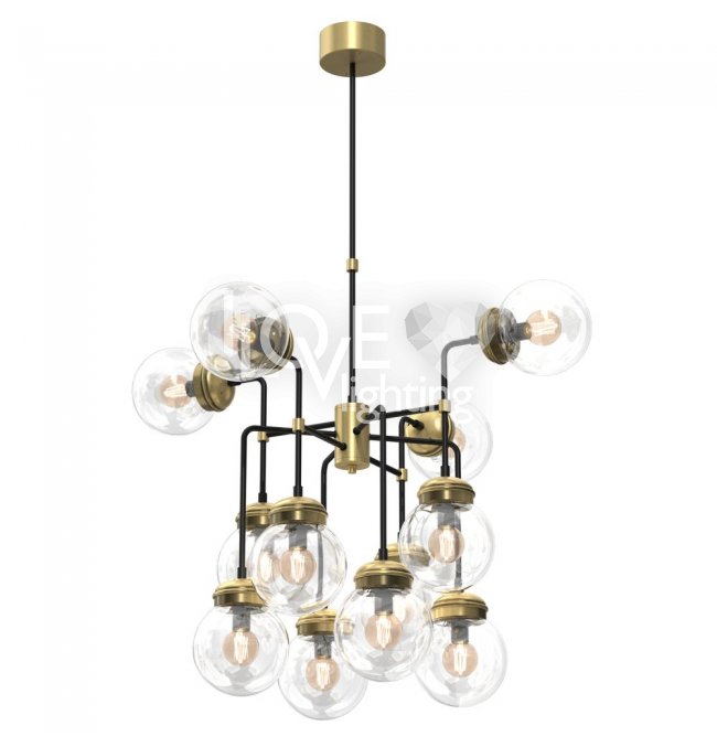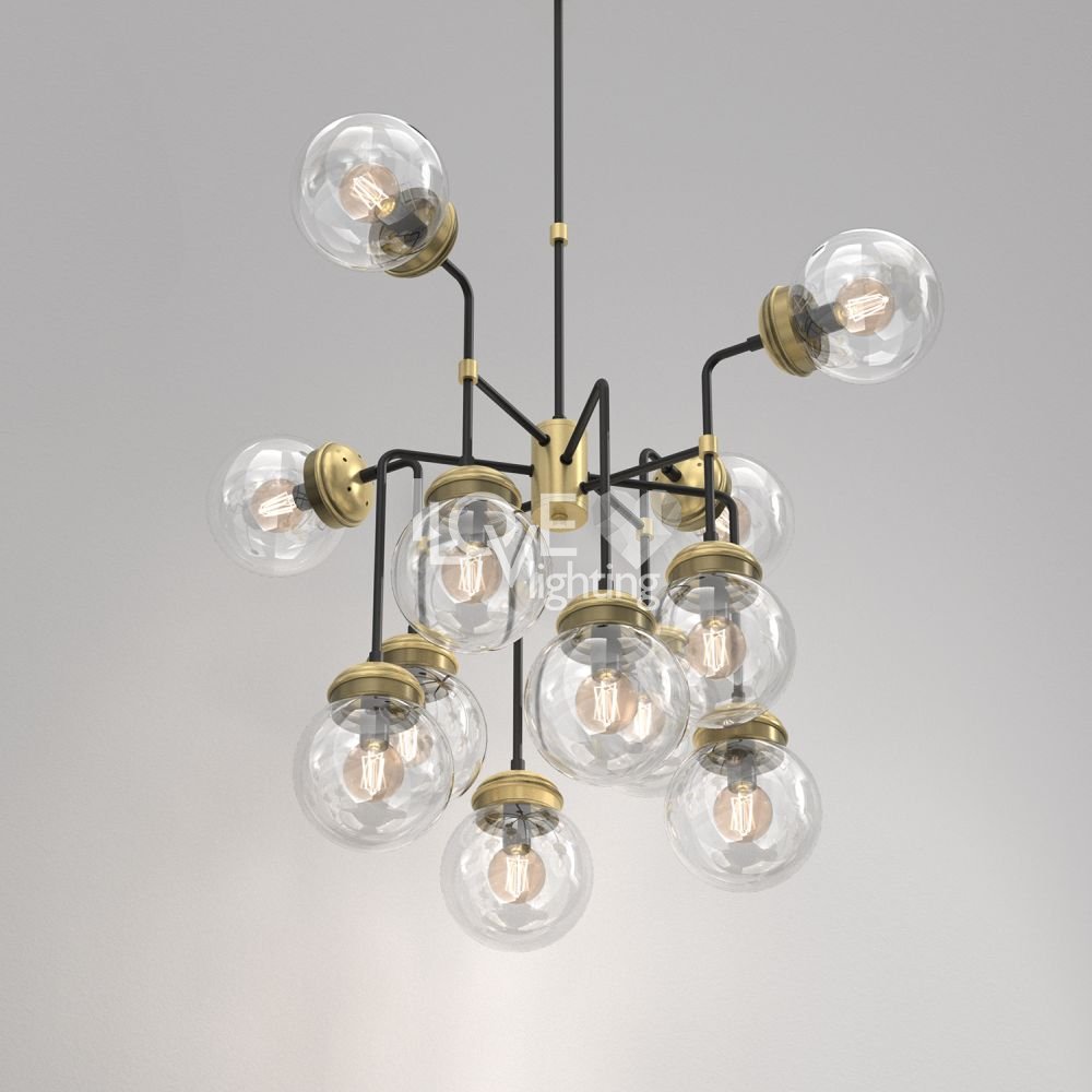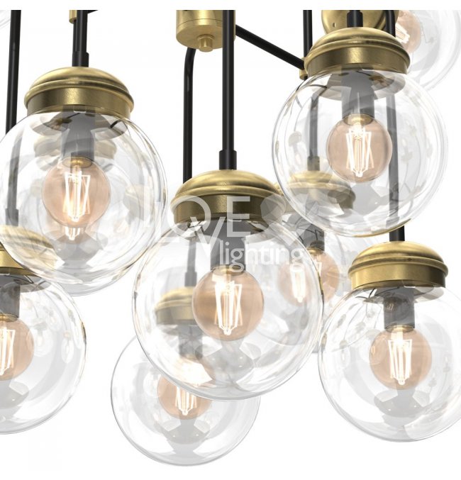 Lampa wisząca 12-punktowa ze szklanymi okrągłymi kloszami HYDRO 1890 Luminex