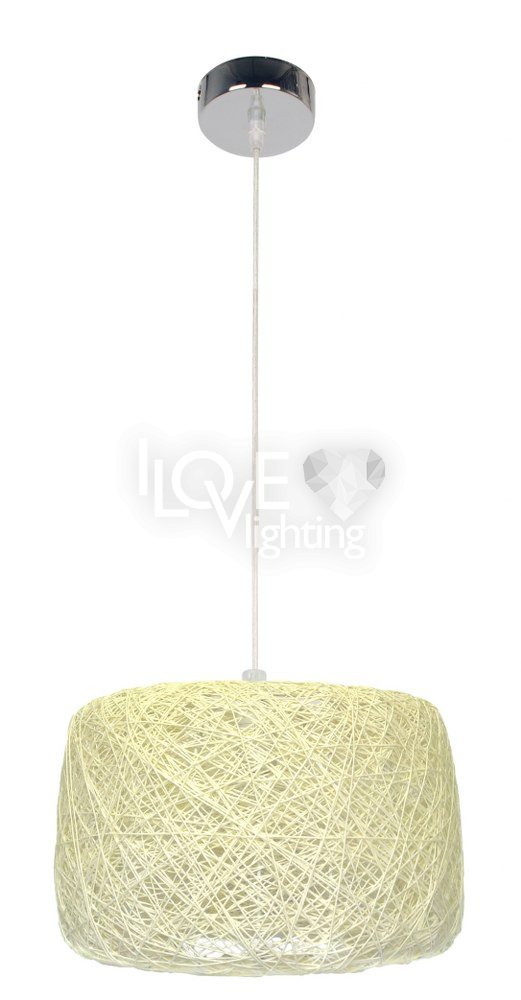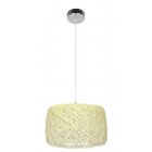 Nowoczesny i niezwykle funkcjonalny zwis abażurowy. Abażur wykonany z jednobarwnej tkaniny.Całość zawieszona na ekskluzywnym zawiesiu z chromowaną podsufitką.