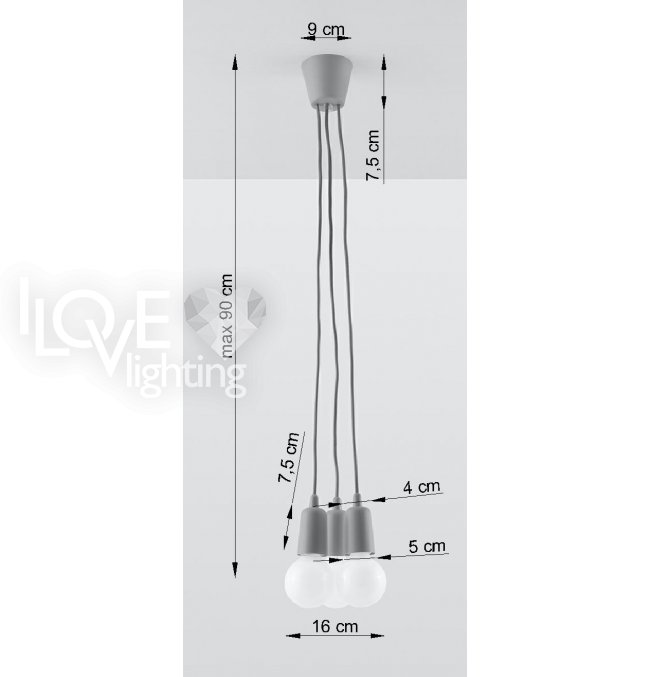 Lampa wisząca DIEGO 3 szara SL.0576 Sollux