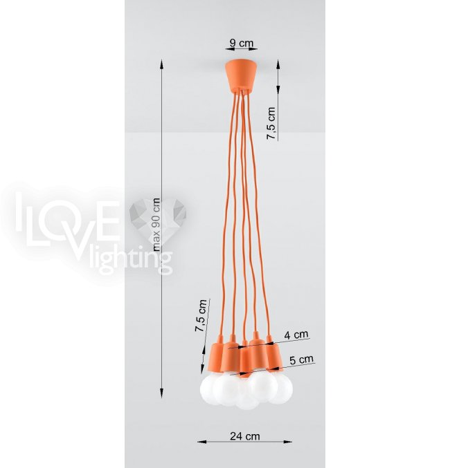 Lampa wisząca DIEGO 5 pomarańczowy SL.0586 Sollux