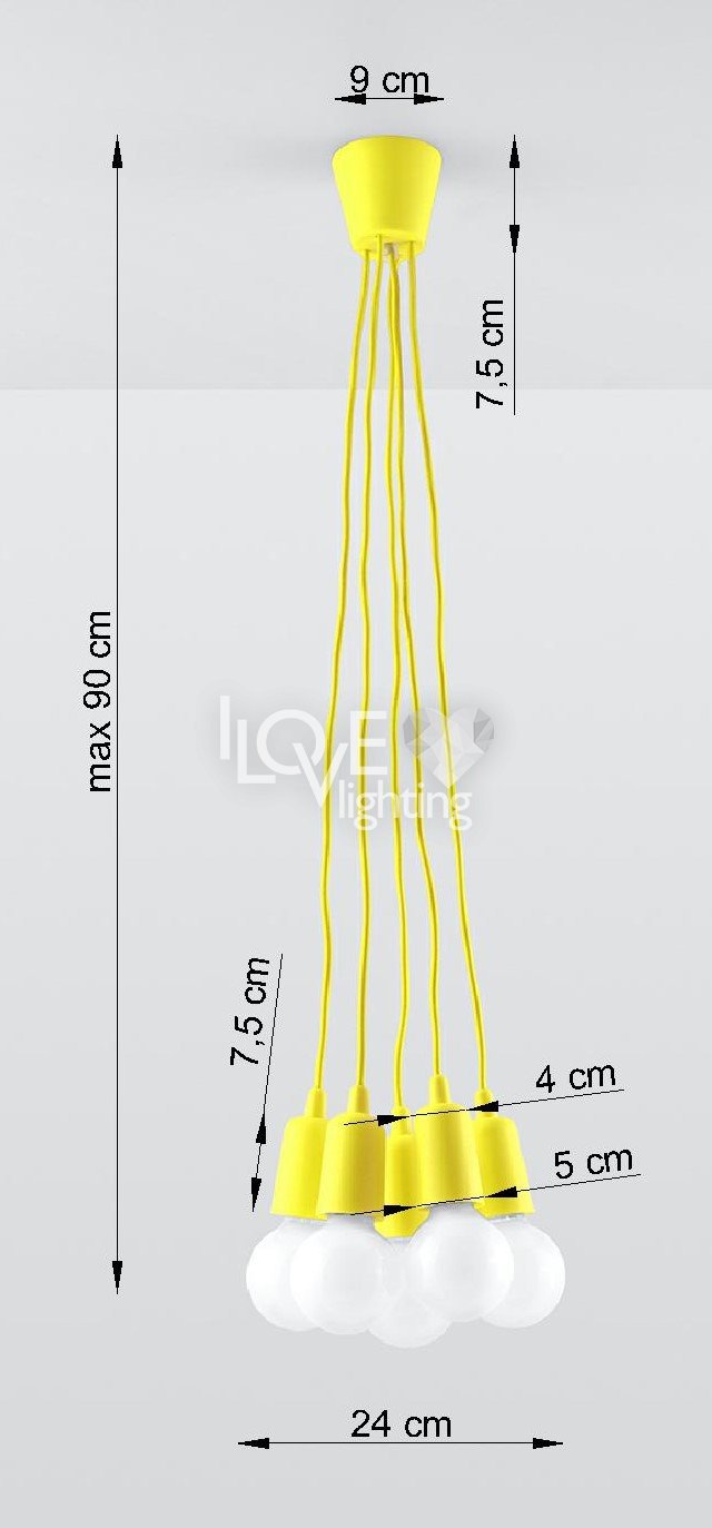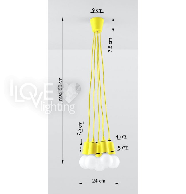 Lampa wisząca DIEGO 5 żółta SL.0580 Sollux