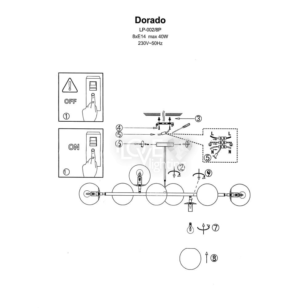 Lampa wisząca DORADO LP-002/8P BK Light Prestige