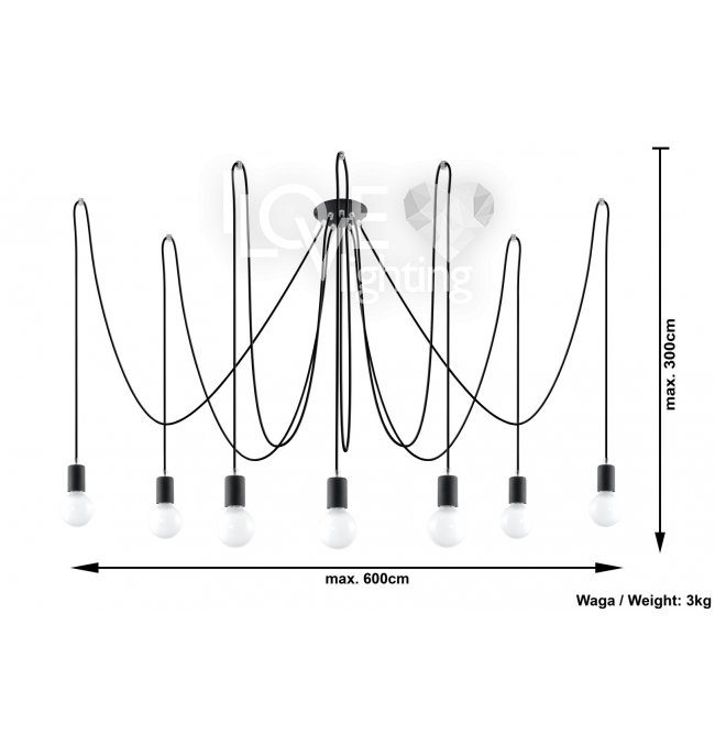 Lampa wisząca EDISON 7 Czarny SL.0372 Sollux