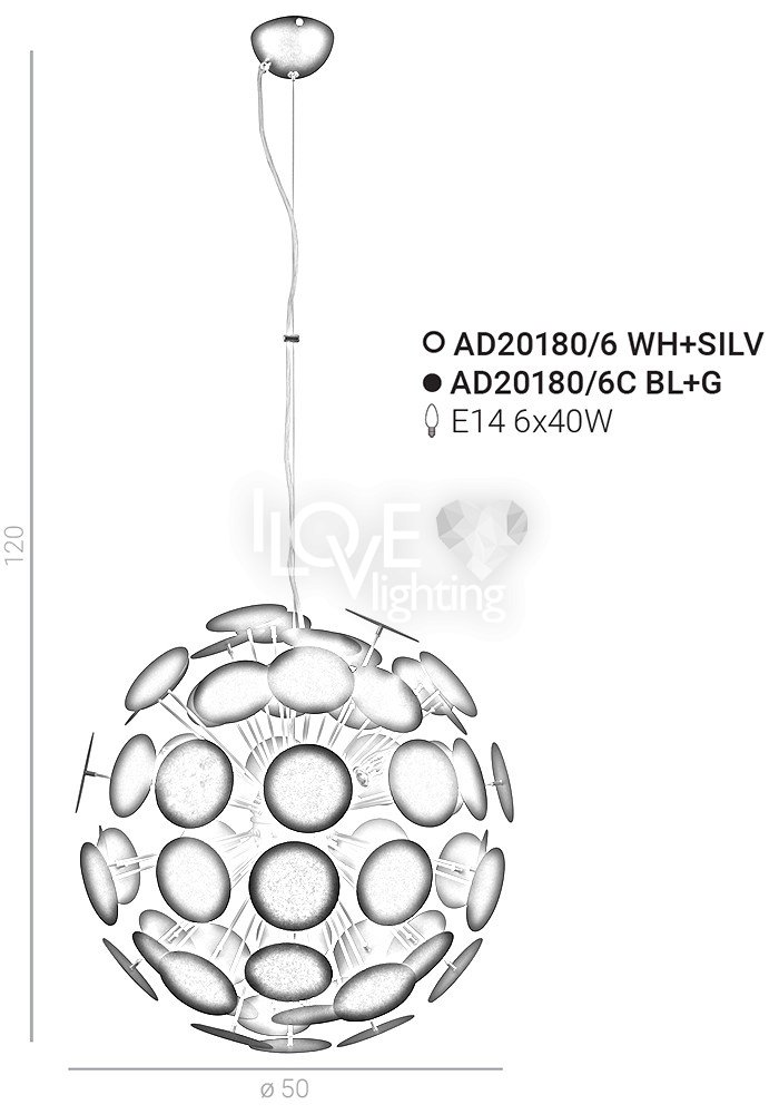 Lampa wisząca Mailone AD20180/6C BL+G Italux