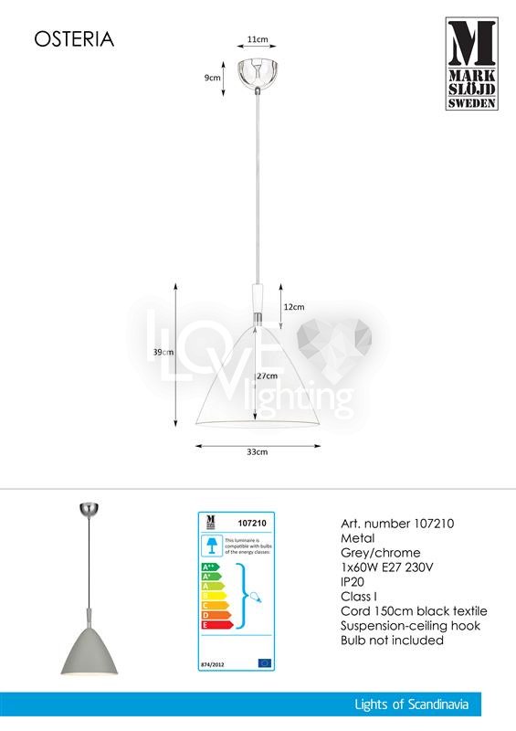Lampa wisząca OSTERIA 107210 Markslojd