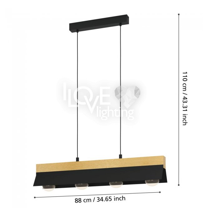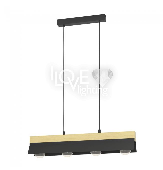 Lampa wisząca TARRAFO wykonana jest z zawieszonej, brązowej drewnianej belki, do której z każdej strony przymocowano ukośne metalowe elementy w kolorze czarnym. Lampa połączona jest z czterema widocznymi źródłami światła, które znajdują się pomiędzy metalowymi elementami. Dzięki modnej mieszance materiałów z drewna kauczukowego i metalu ta lampa wisząca doskonale komponuje się z różnymi meblami i przyciąga wzrok w każdym salonie. Przedstawione żarówki nie są objęte zakresem dostawy. Lampa pasuje do każdej żarówki z trzonkiem E27