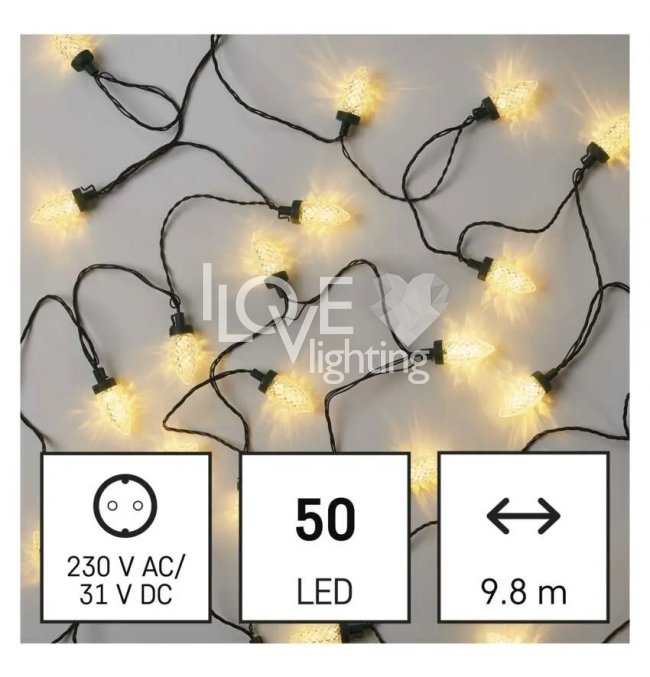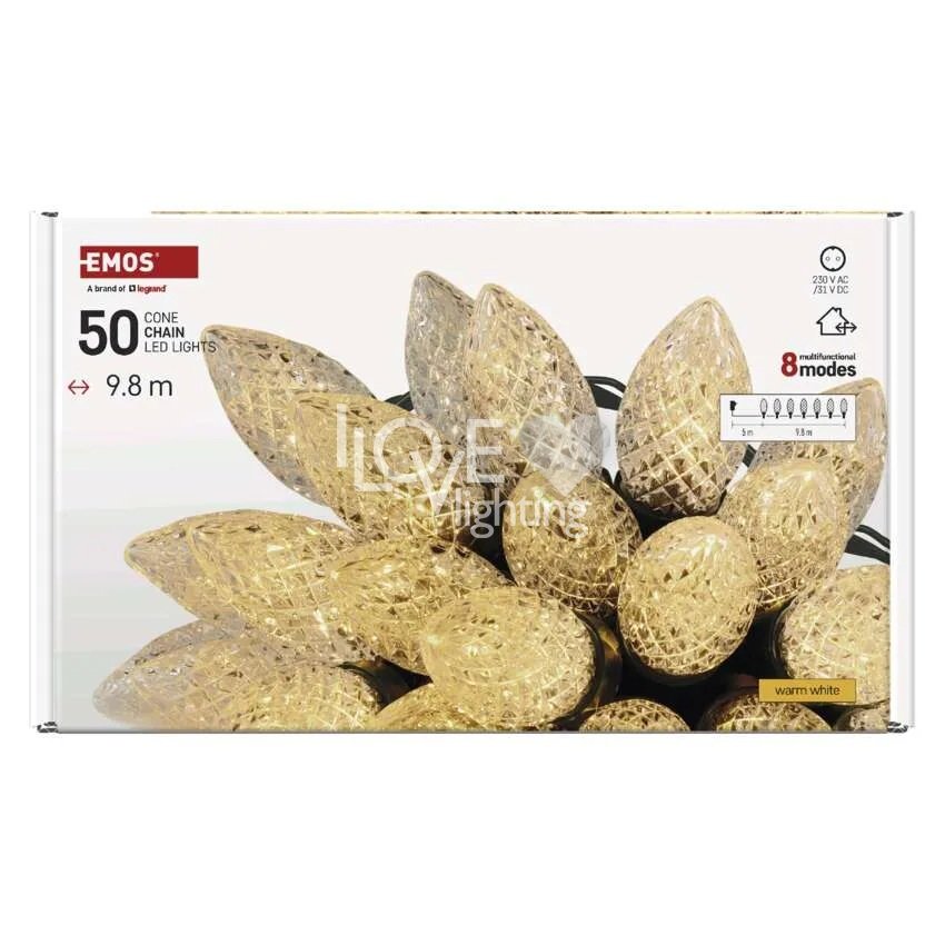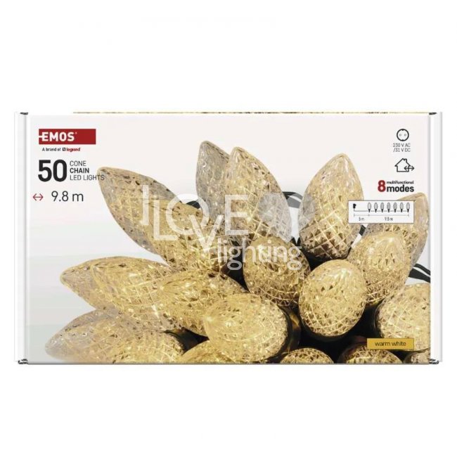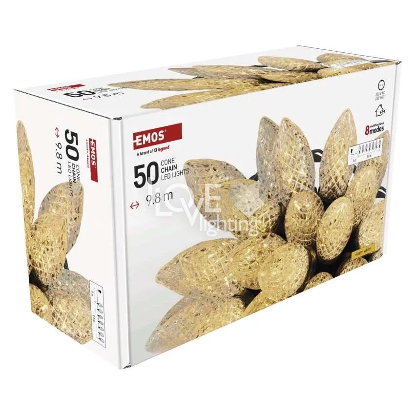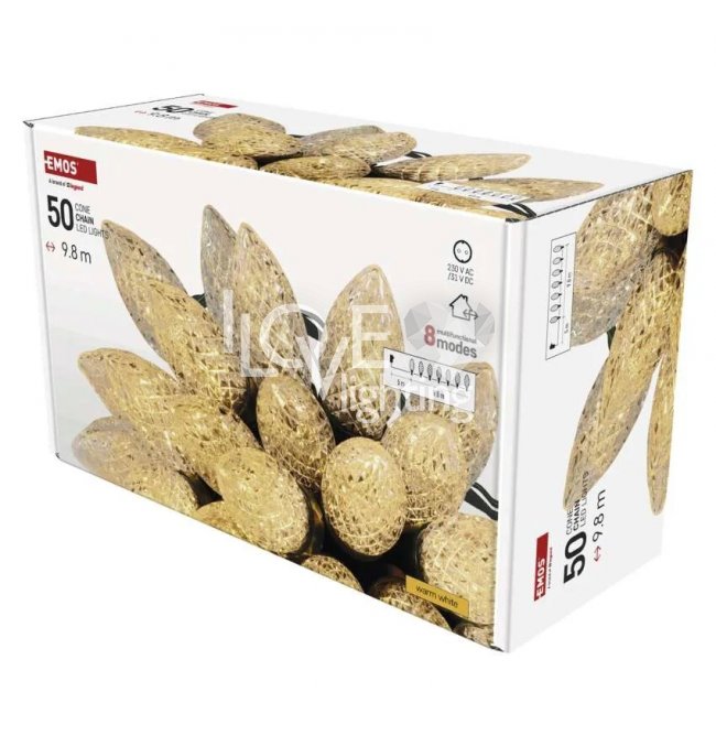 Lampki choinkowe IP44 50 LED 9,8m Classic Chain szyszki ciepła biel D5ZW01 EMOS