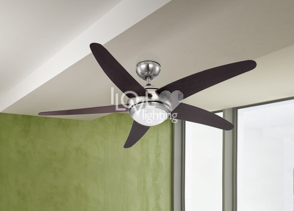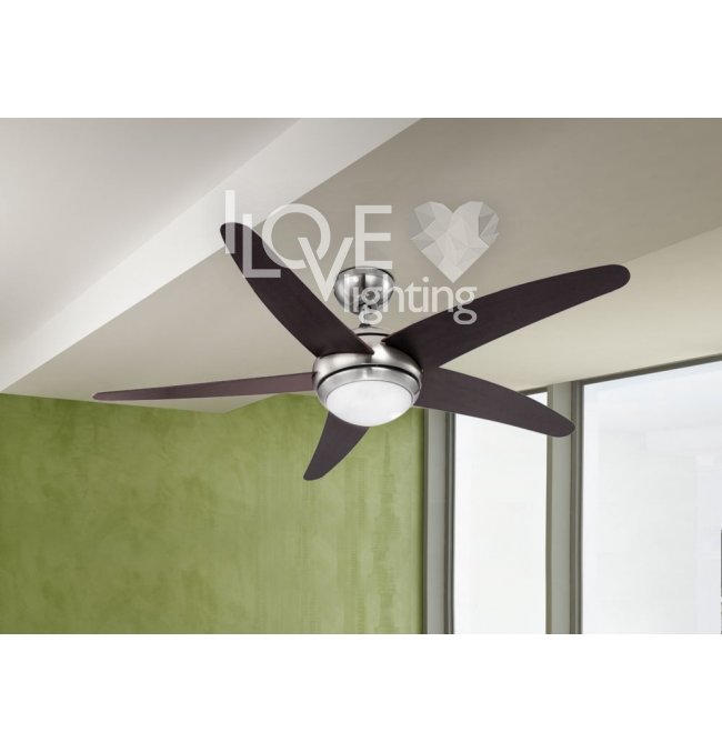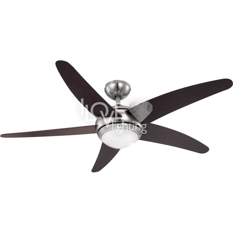 Lampowentylator satynowy, Łopaty MDF Wenge, szkło opalizowane, 3 zakresy prędkości prawo-lewo, silnik 55W, 230V, ?1320 mm, wysokość 372 mm, w komplecie żarówówka 1xR7S 80W 230V