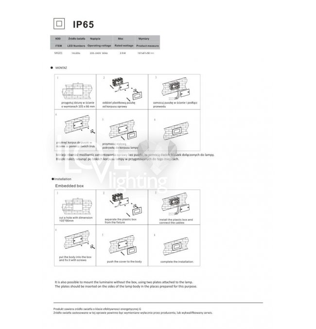 | Stopień ochrony: | IP65 |