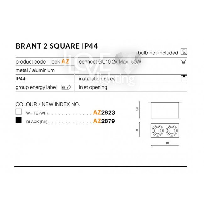 Oprawa hermetyczna natynkowa spot Brant 2 AZ2879 Azzardo
