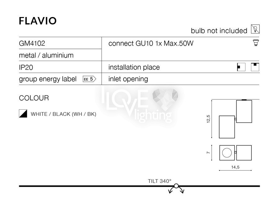 | Maksymalna moc żarówki (W): | 50 |