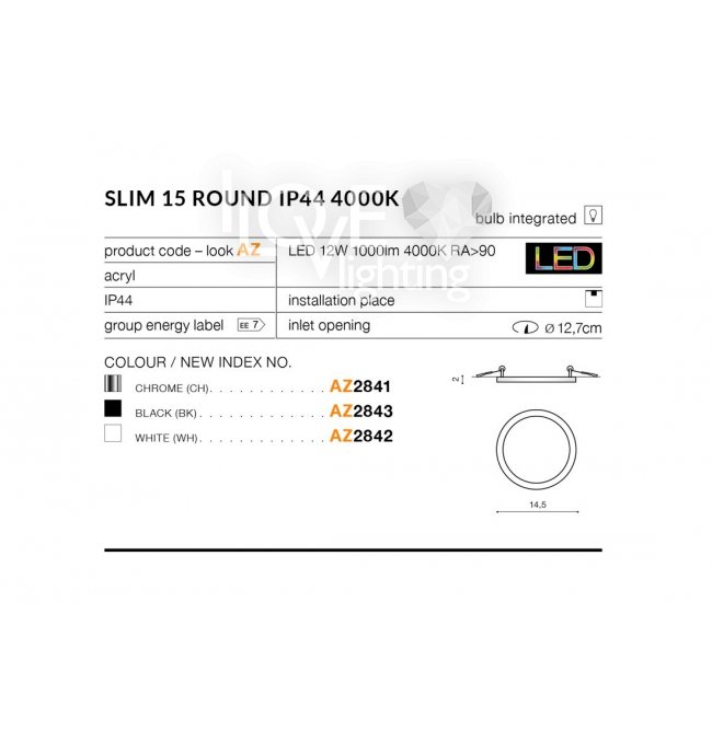 Oprawa wpuszczana 4000K IP44 Slim 15 AZ2842 Azzardo