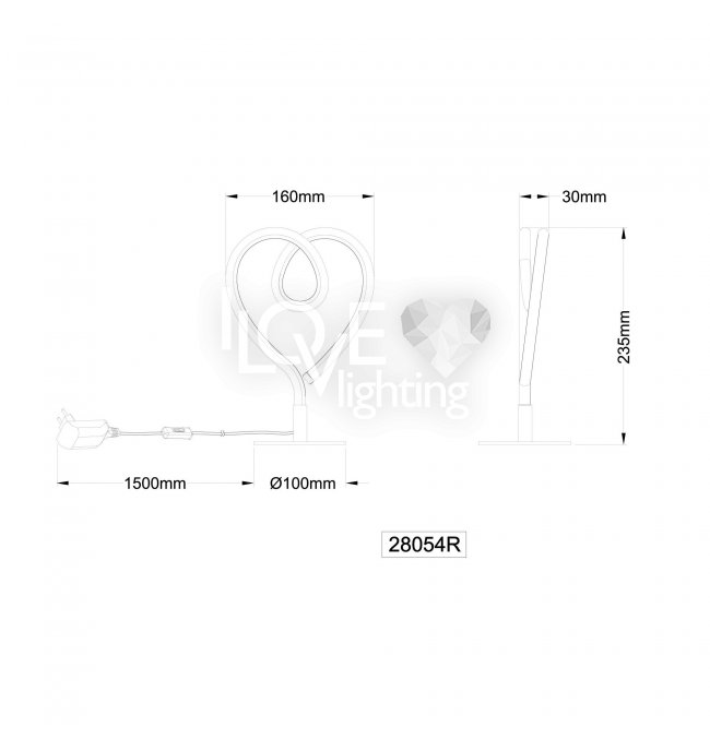 Ozdobna lampa stołowa serce LED 6W AMORE 28054R Globo