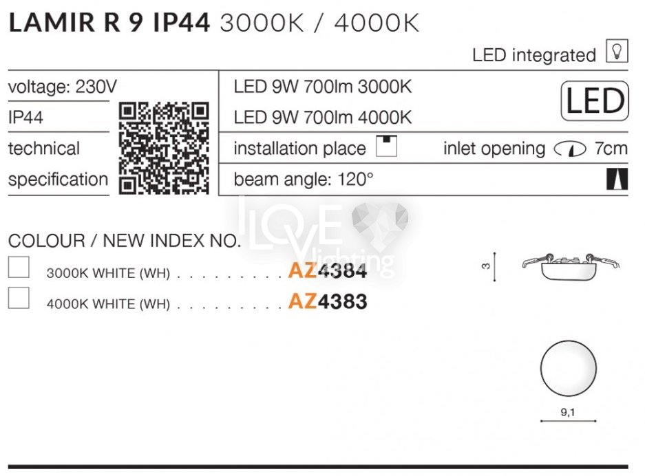 Plafon wpuszczany LED 9W IP44 LAMIR R 9 AZ4384 Azzardo