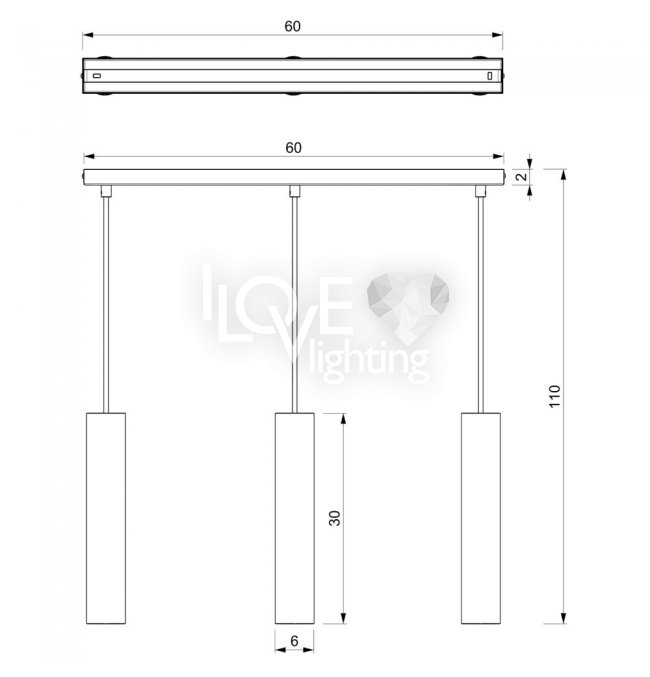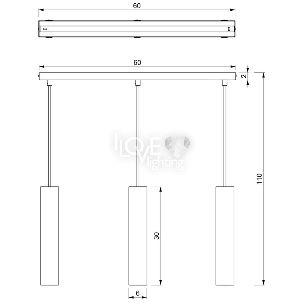 Potrójna lampa wisząca tuby na listwie RAITO 115 Luminex