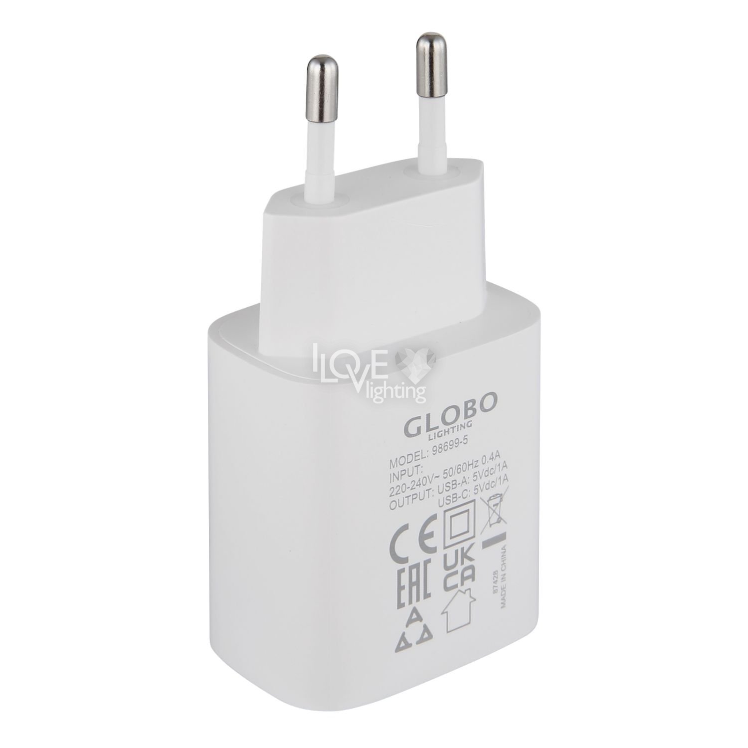 Wtyczka USB A i USB-C do gniazdka USB NETZSTECKER 5W 98699-5 Globo