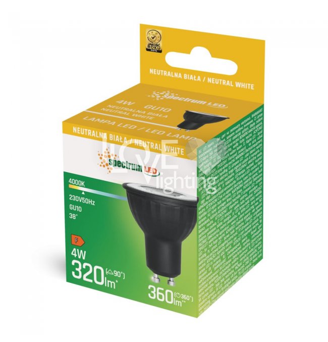 Żarówka czarna LED z soczewką 38st 4W SMD GU10 NW WOJ+14688 Spectrum